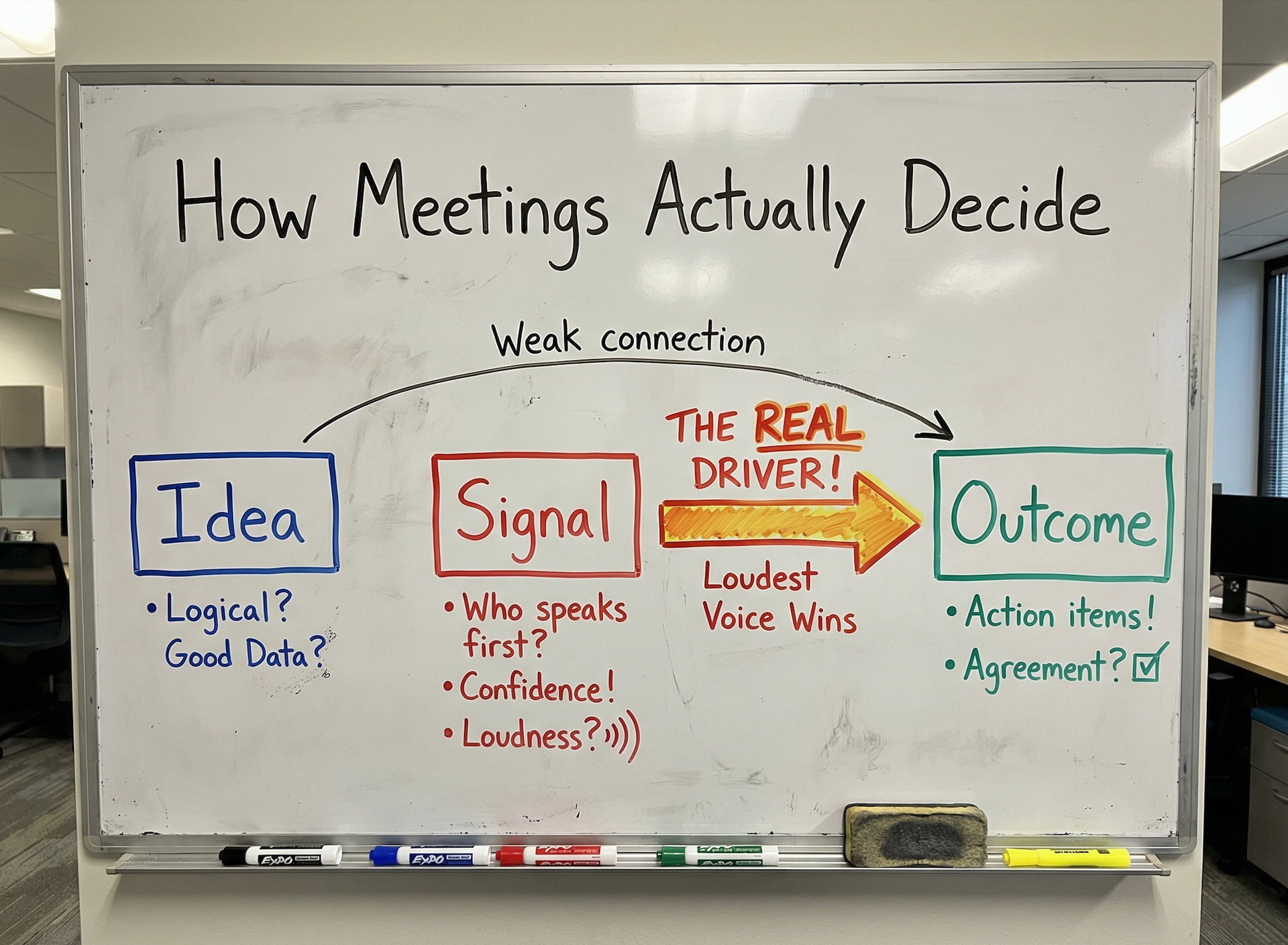 Meetings are not neutral environments where the best idea automatically wins. They are rapid assessment systems.